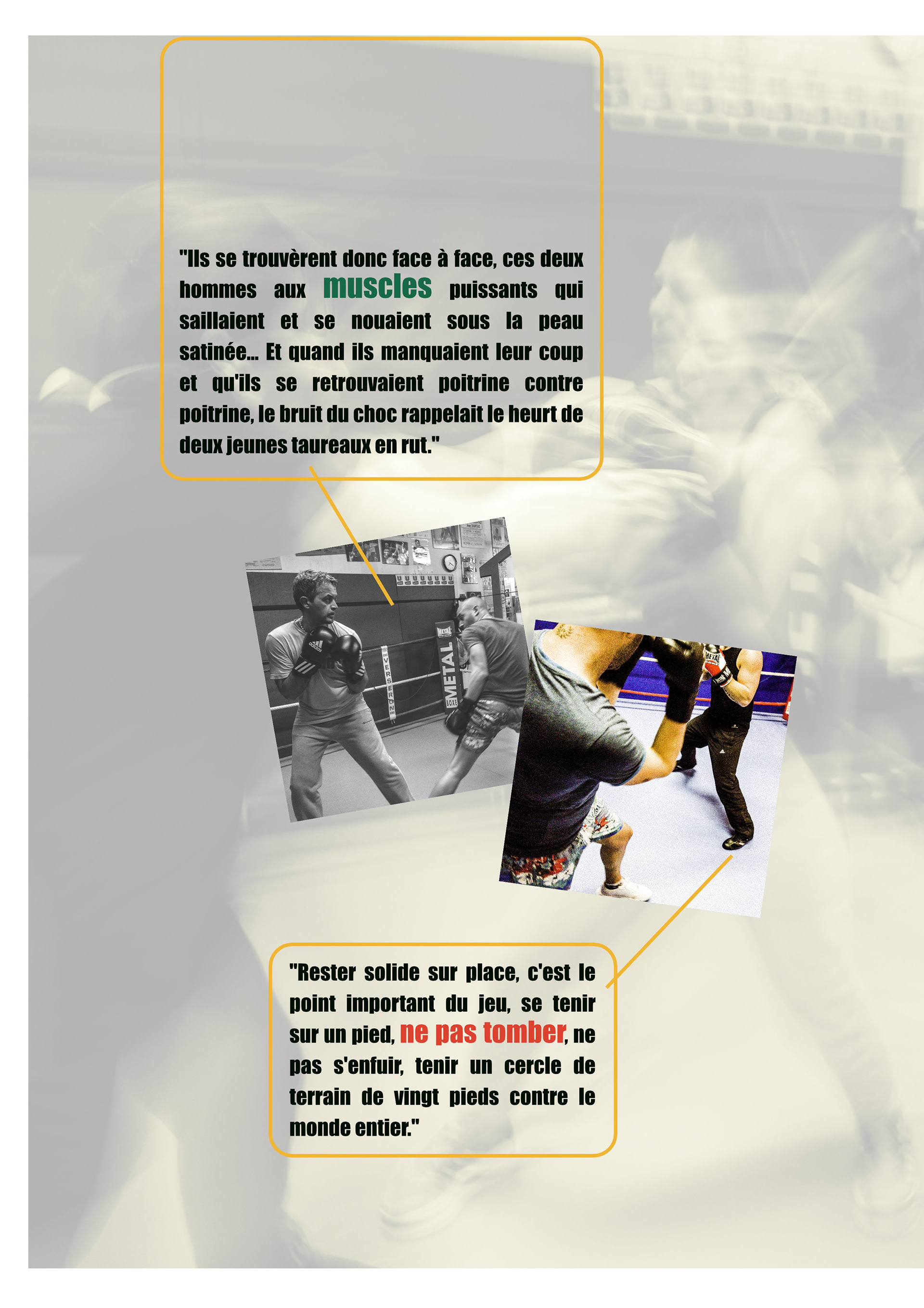 "A la faveur d'un appel à projets pour un dialogue photographique, se rendre compte que l’œuvre de Jack London va bien au-delà de ses fréquentations littéraires de jeunesse : "Croc blanc", "Mickael chien de cirque", "L'appel de la forêt"... Découvrir qu'au sein d'une œuvre immense et multi-thématique Jack London a longuement, et à de nombreuses reprises, écrit sur la boxe. La boxe !